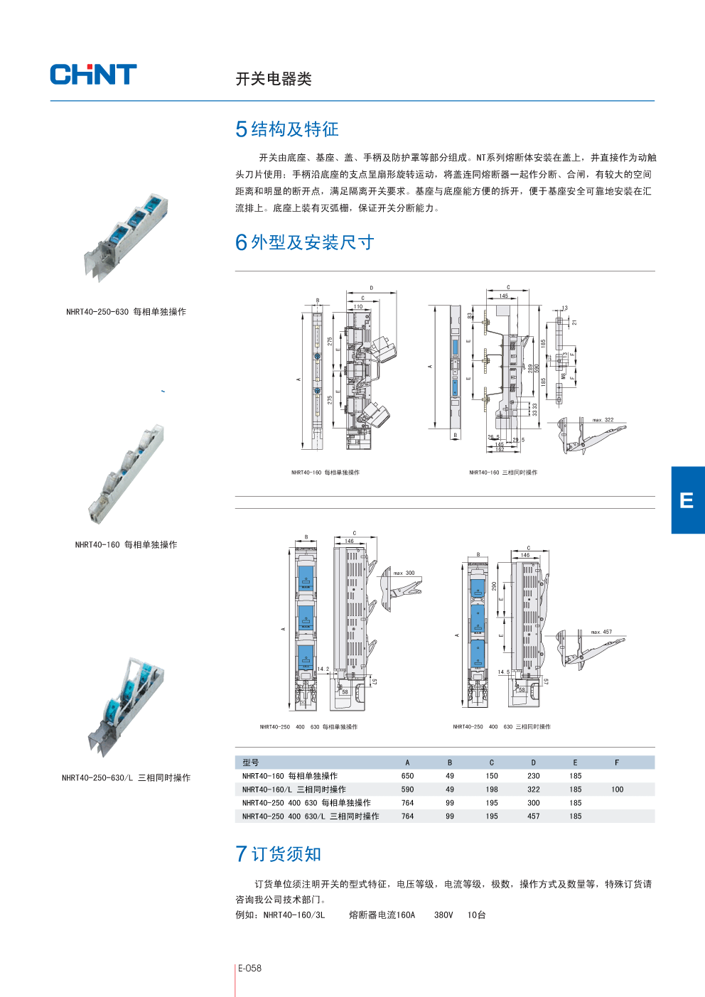 适用于交流额定电压 660V及以下,交流160A~630A,额定交流频率50Hz。工业企业配电系统中,主要用于有高短路电流的配电电路和电动机电路中,可供不频繁手动接通和分断电路及隔离电源用,并能对交流电路短路保护。本开关不适合作为起动和断开单台电动机开关之用。产品符合IEC60947-3 GB14048.3标准 | |